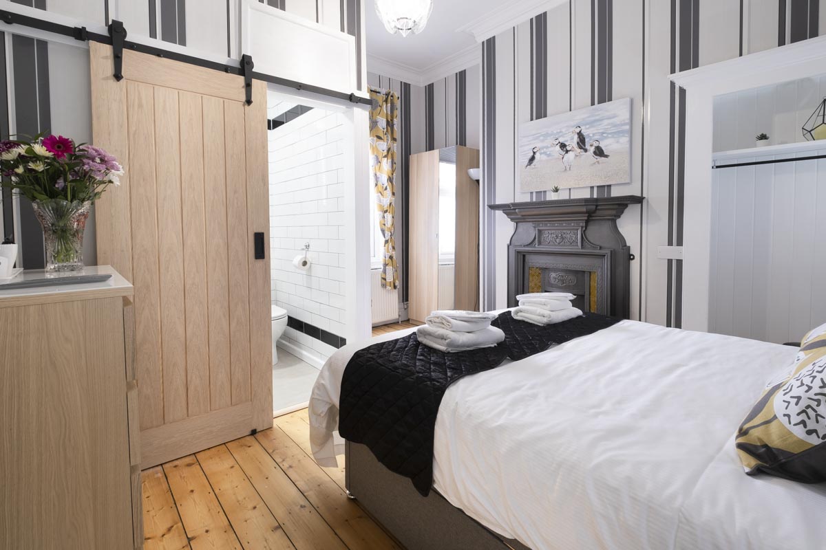 Room 4 – A Double en-suite room with a large full bay window allowing daylight to flood in. Guests should be aware that the en-suite is quite small and does consist of a saniflow system which is a little more noisy than a normal toilet